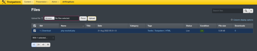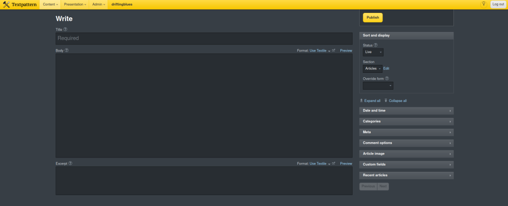 Now let’s take a look and see what we can see at /textpattern/textpattern