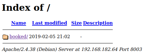 301 GET 9l 28w 328c http://192.168.182.64:8003/booked/Web => http://192.168.182.64:8003/booked/Web/