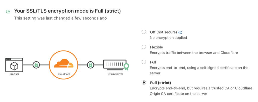 The traffic flow essentially looked like browser > Cloudflare > origin server. The origin server was a Nginx web server, where the website in question was protected with a certificate for Let’s Encrypt.