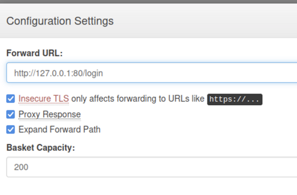Because I remember that port 80 was filtered in our nmap scan, and we can use this application to mess with HTTP requests, I decided to see if I could access the contents of the webpage via the basket that was created for me. I set my settings to be similar to the below: