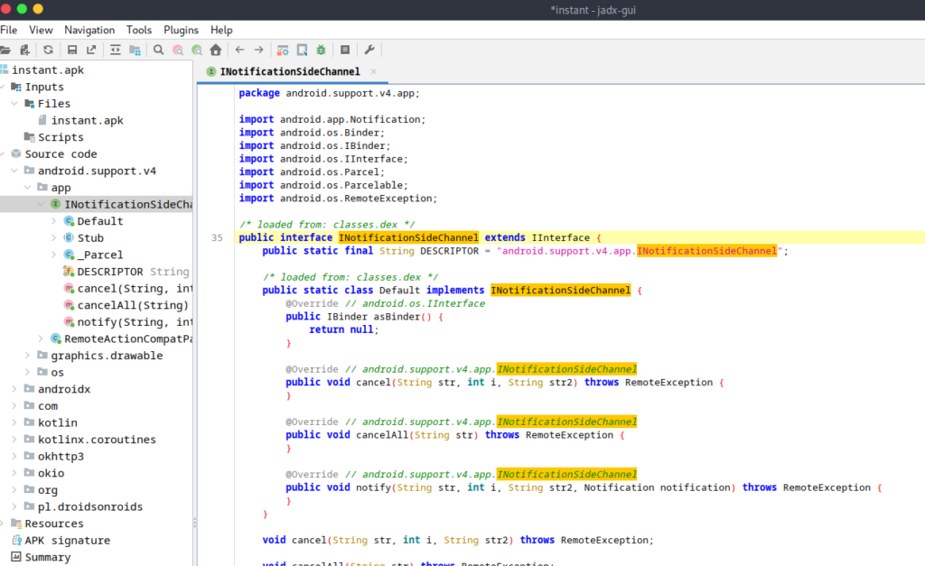 python3 apkleaks.py -f /home/pegasustea/Downloads/instant.apk
