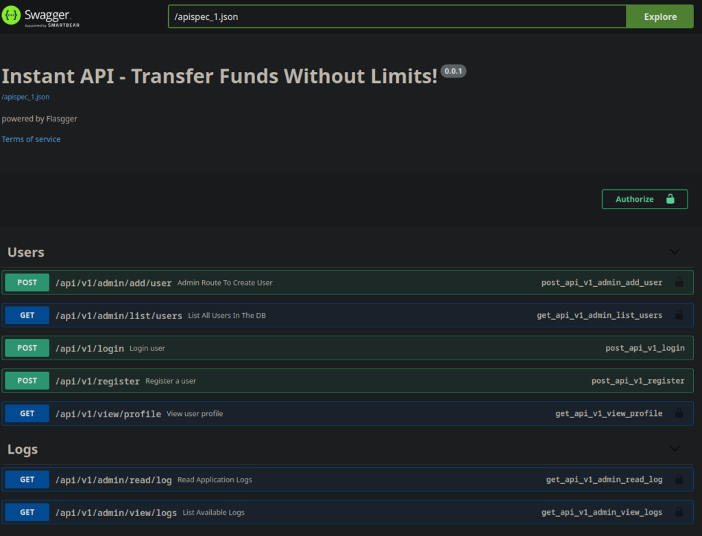 Visiting swagger-ui.instant.htb, I see what looks like a browser based api testing and documentation tool.