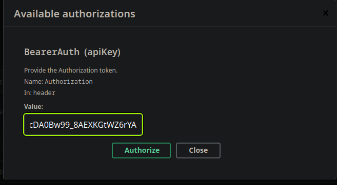 Instantly, the log related endpoint stands out, because I had not identified it previously when looking at the apk file. I clicked the authorize button and use the token I found earlier.
